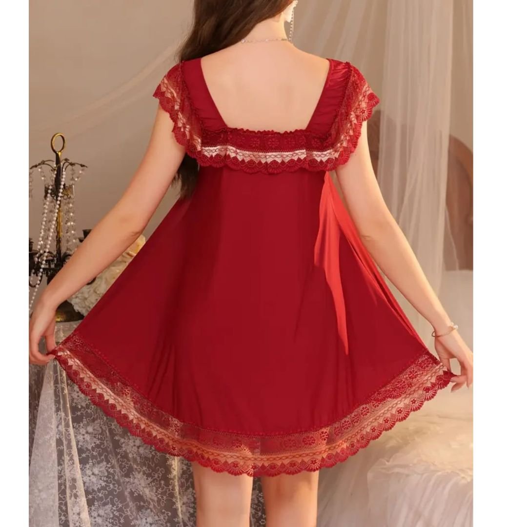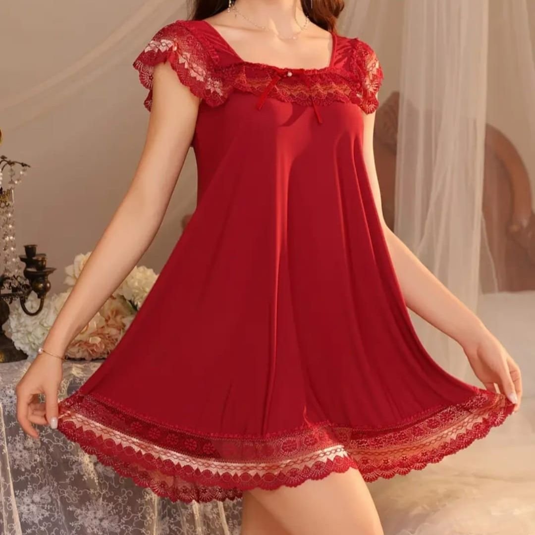 Home Night Wear Baby Doll Net Nighty One Beautiful Women’s Nightgown With Lace Trim Bridal Nighty-1644