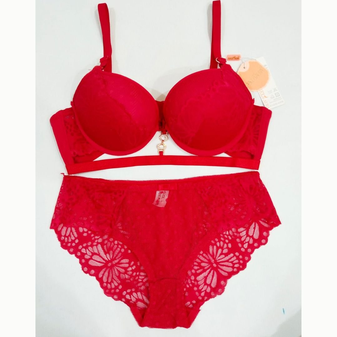 Ladies Imported High Quality Soft Silky Bra Panty Set with Removable Pads